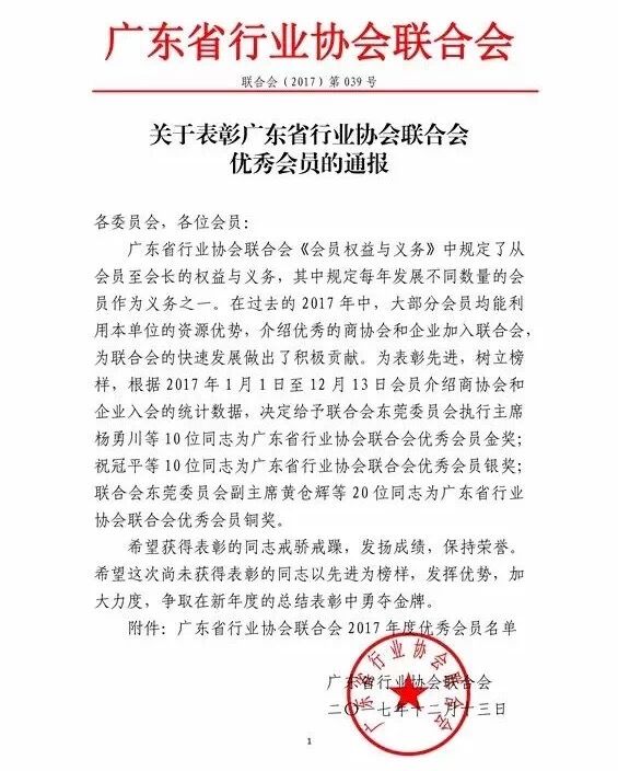 廣東省行業(yè)協(xié)會聯(lián)合會2017年度盛典評優(yōu)通報